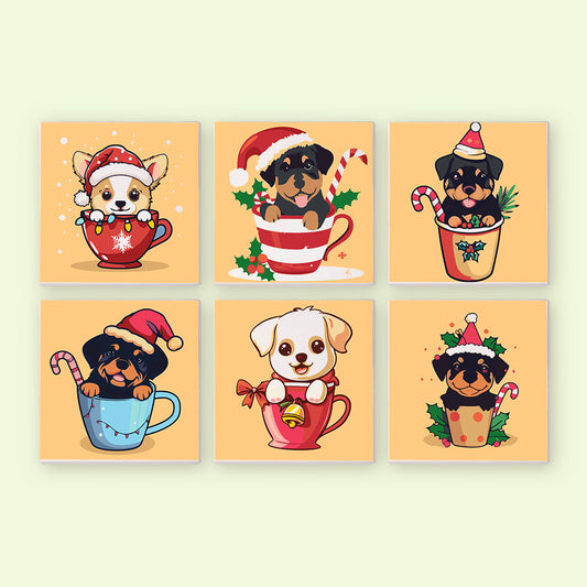 Mini Paint by Numbers Series dog - 6-in-1 Set (6"x6" / 15x15cm)