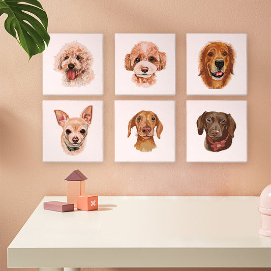 Mini-Malen-nach-Zahlen-Serie Nr. 14: „Hund“ – 6-in-1-Set (6"x6" / 15x15cm)