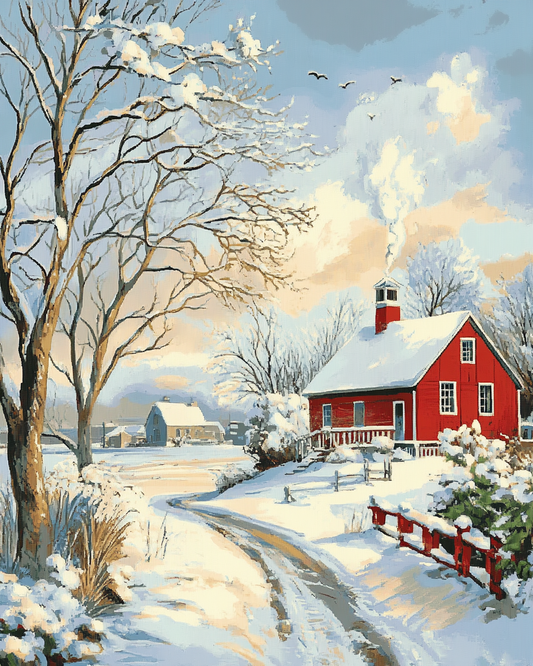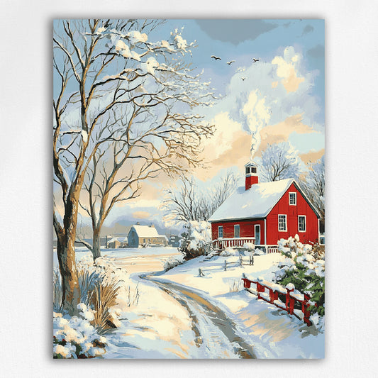 Red House Snow Movie - Paint by Numbers Kit