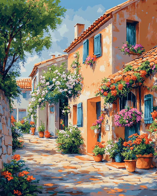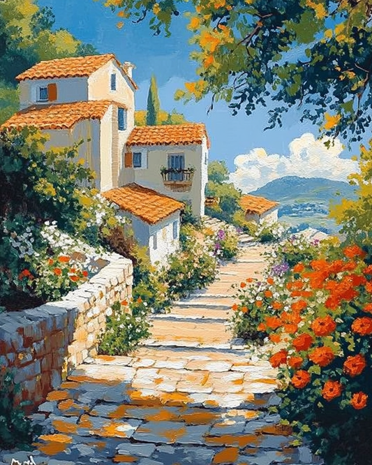 Flowers Surround the Village - Paint by Numbers Kit