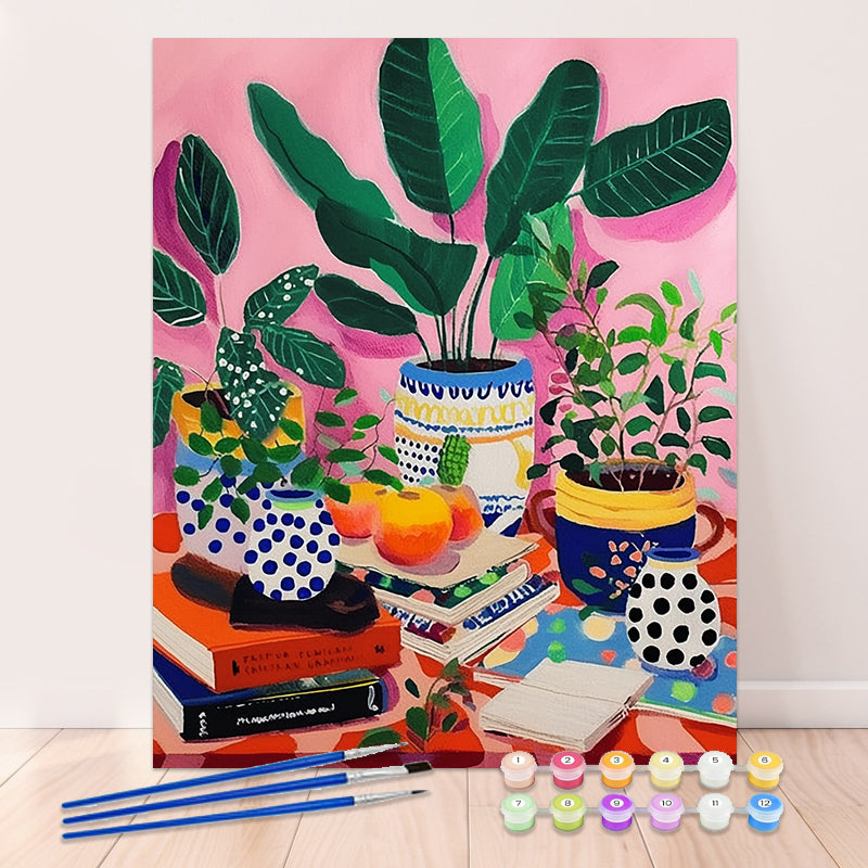 Match the numbers on the canvas with the labeled paint pots and start painting.