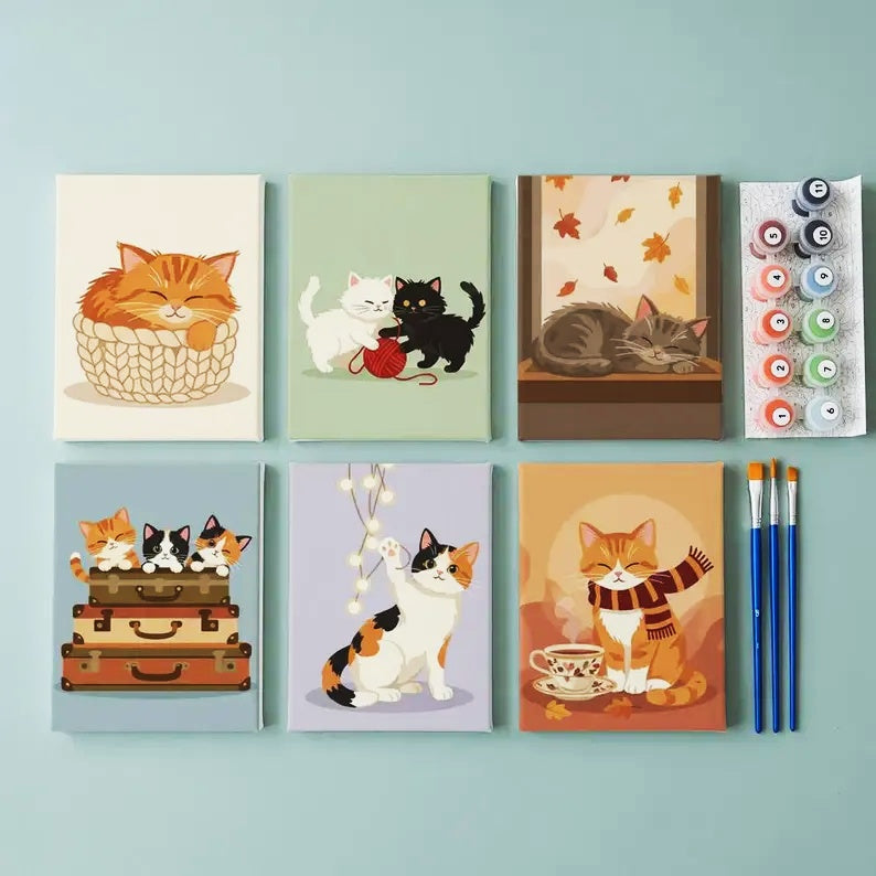 The paint by numbers contains a painting canvas , 3 brushes, a box of paints, and a sticker corresponding to the number, which can be used to help the consumer better find the color number of the paints needed. We also have a color card that corresponds to the color number and the order of the painting.