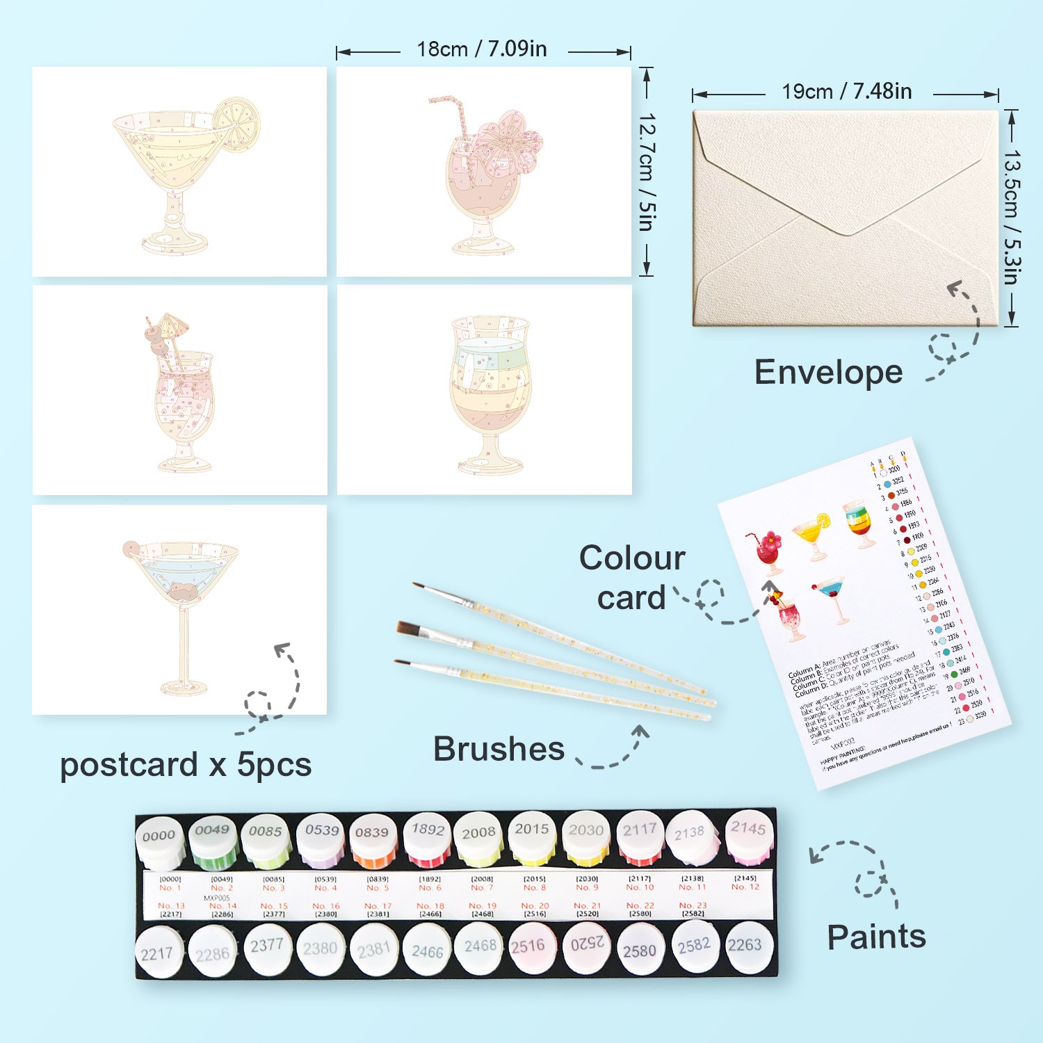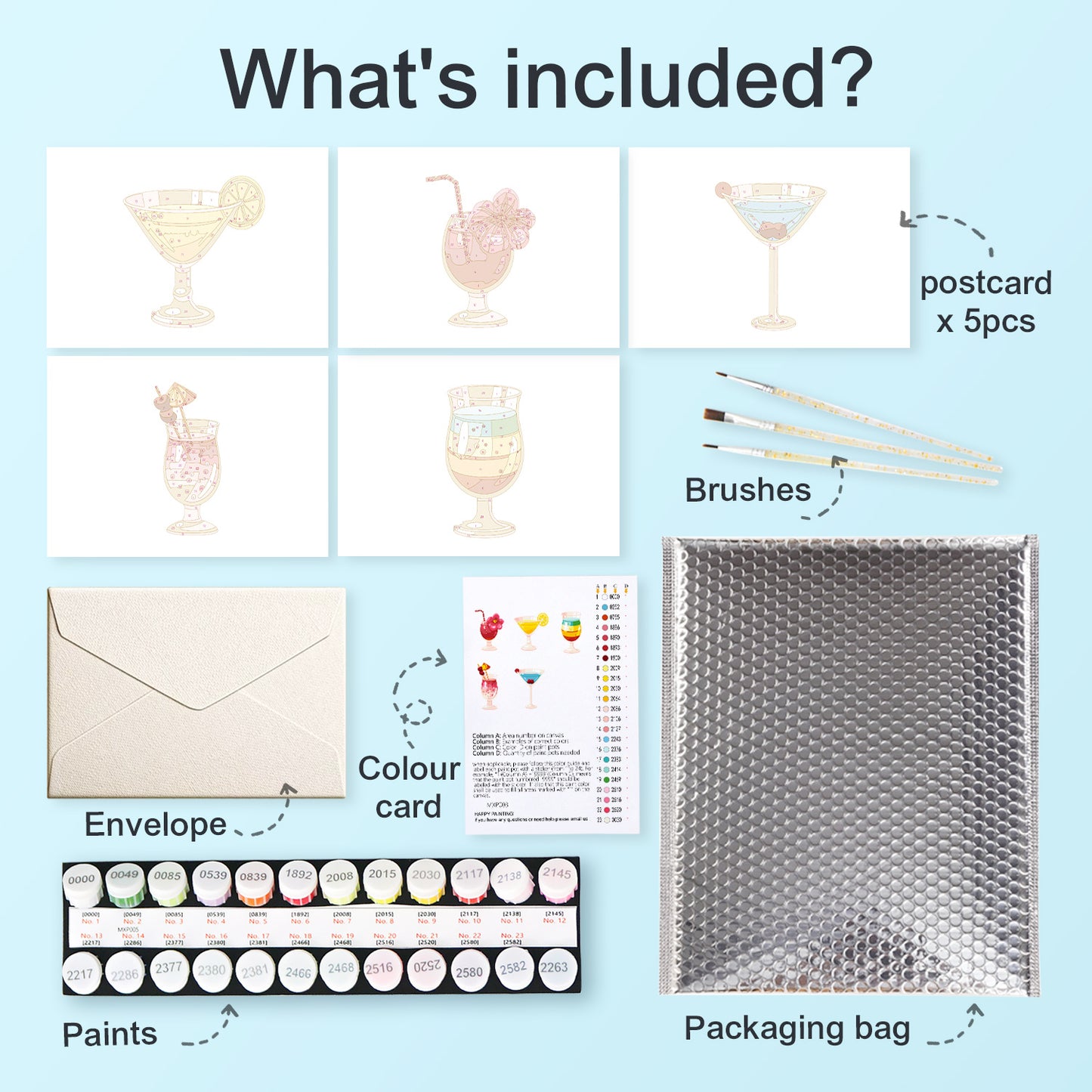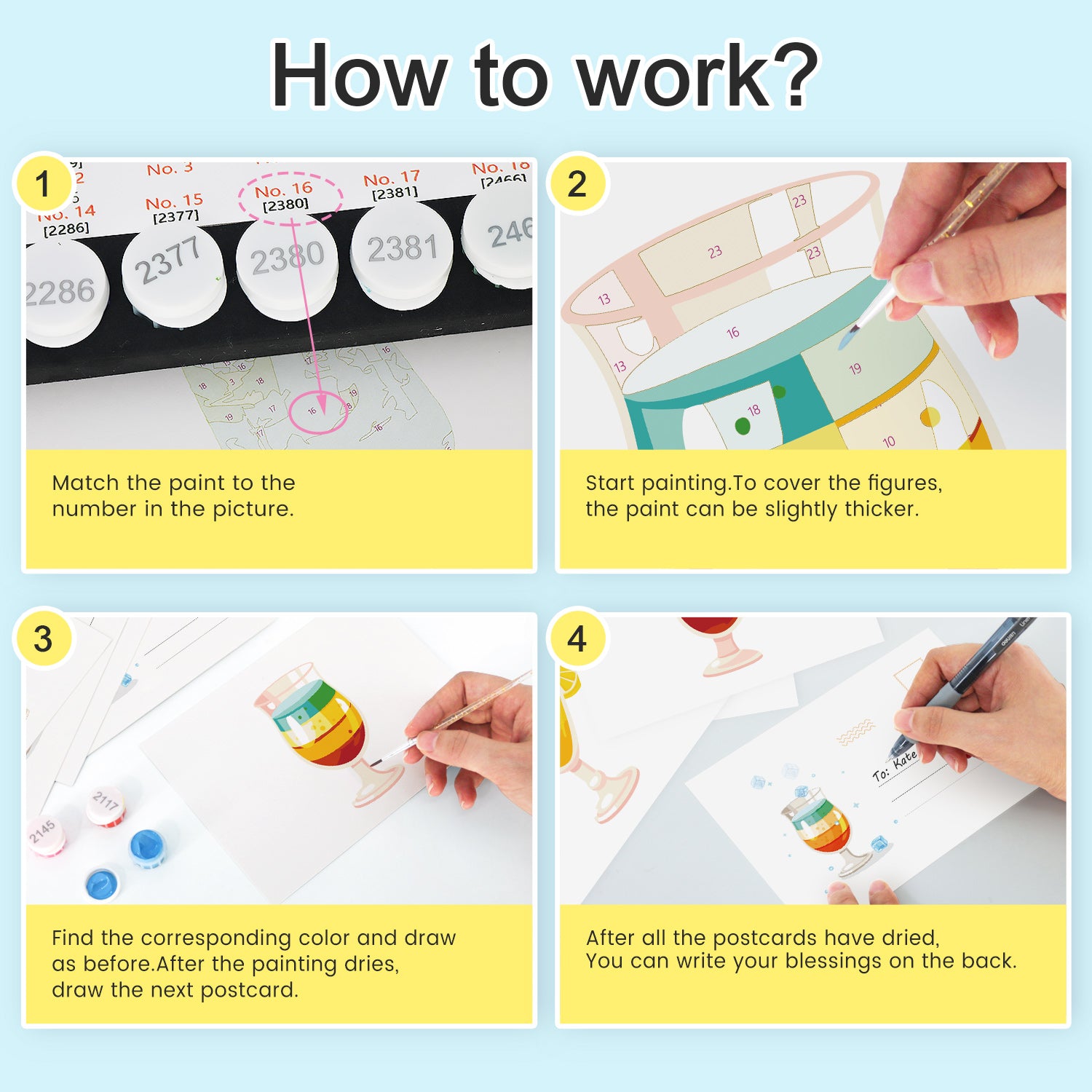 1.Numbered Paint Pots 2.Full Set of Brushes 3.Color Guide