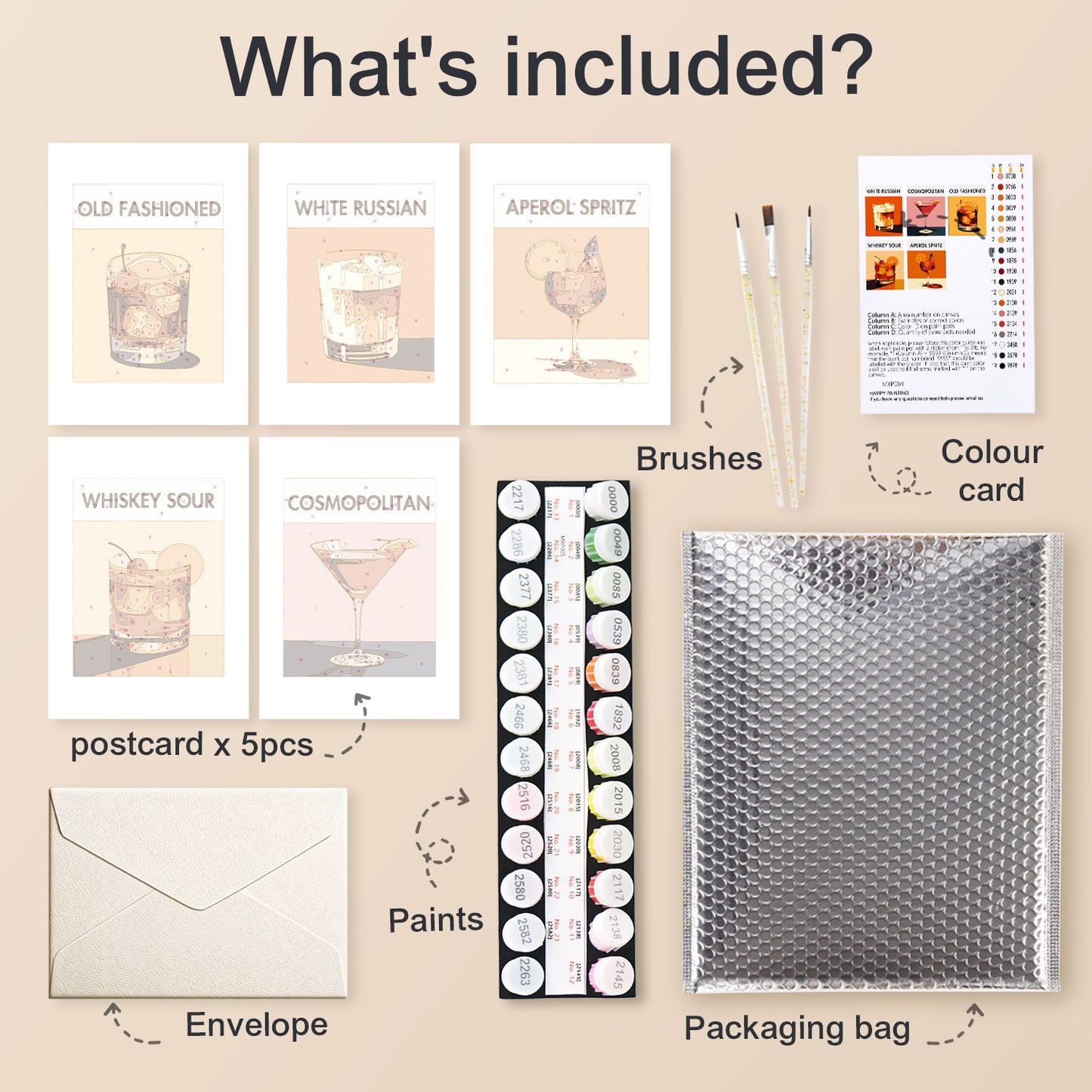 1.Numbered Paint Pots 2.Full Set of Brushes 3.Color Guide