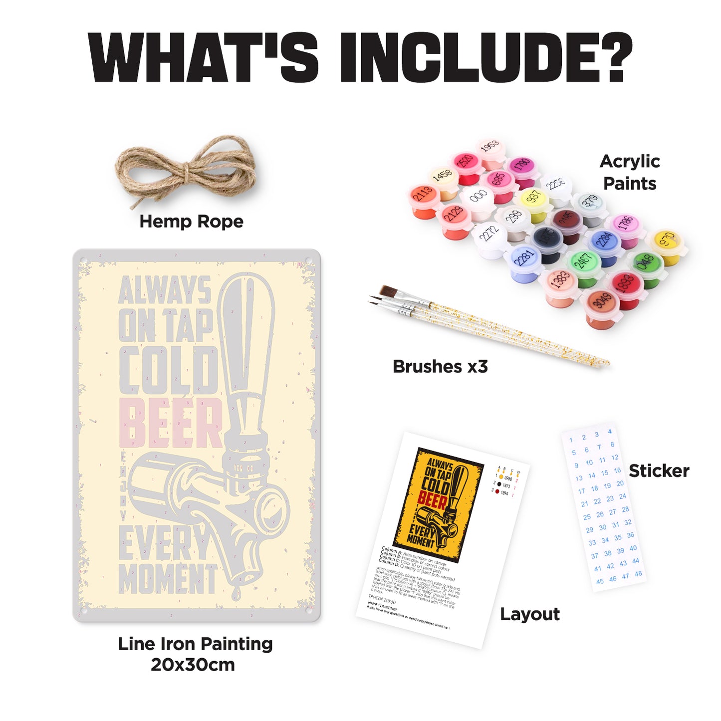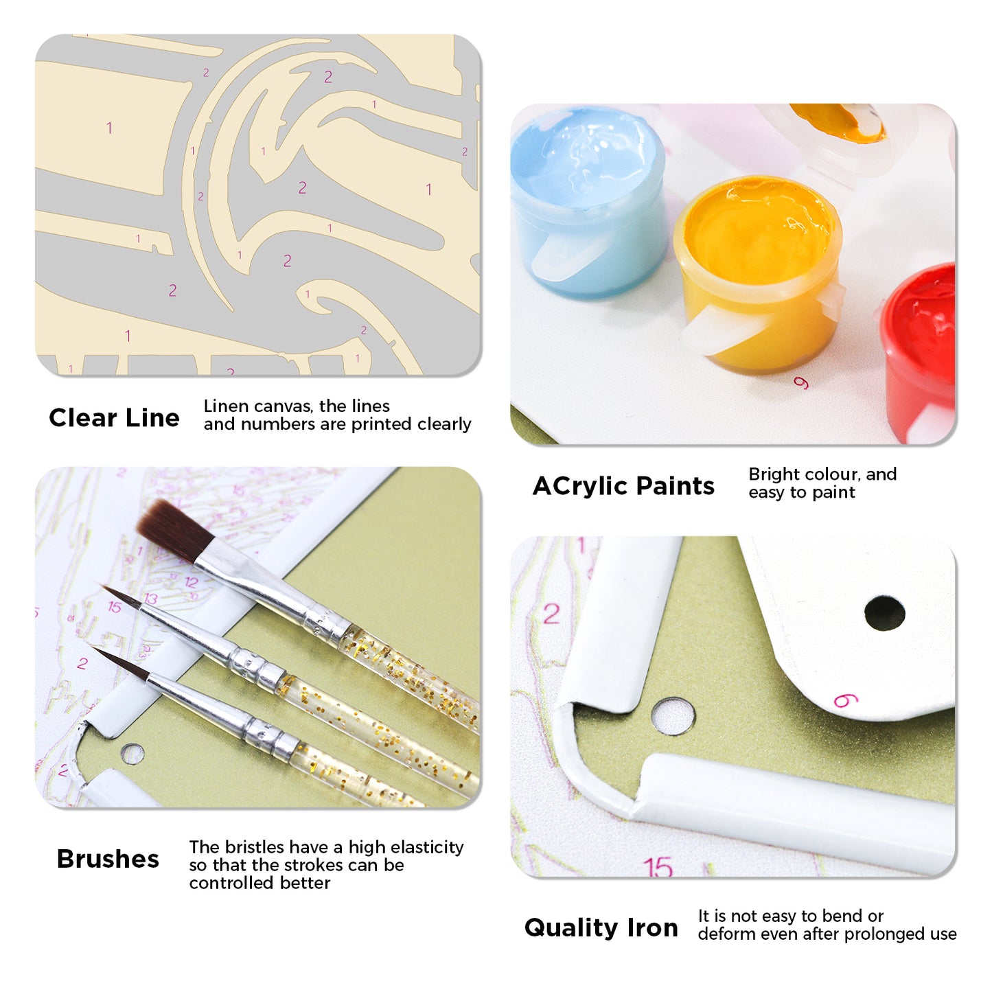 1.Numbered Paint Pots 2.Full Set of Brushes 3.Color Guide