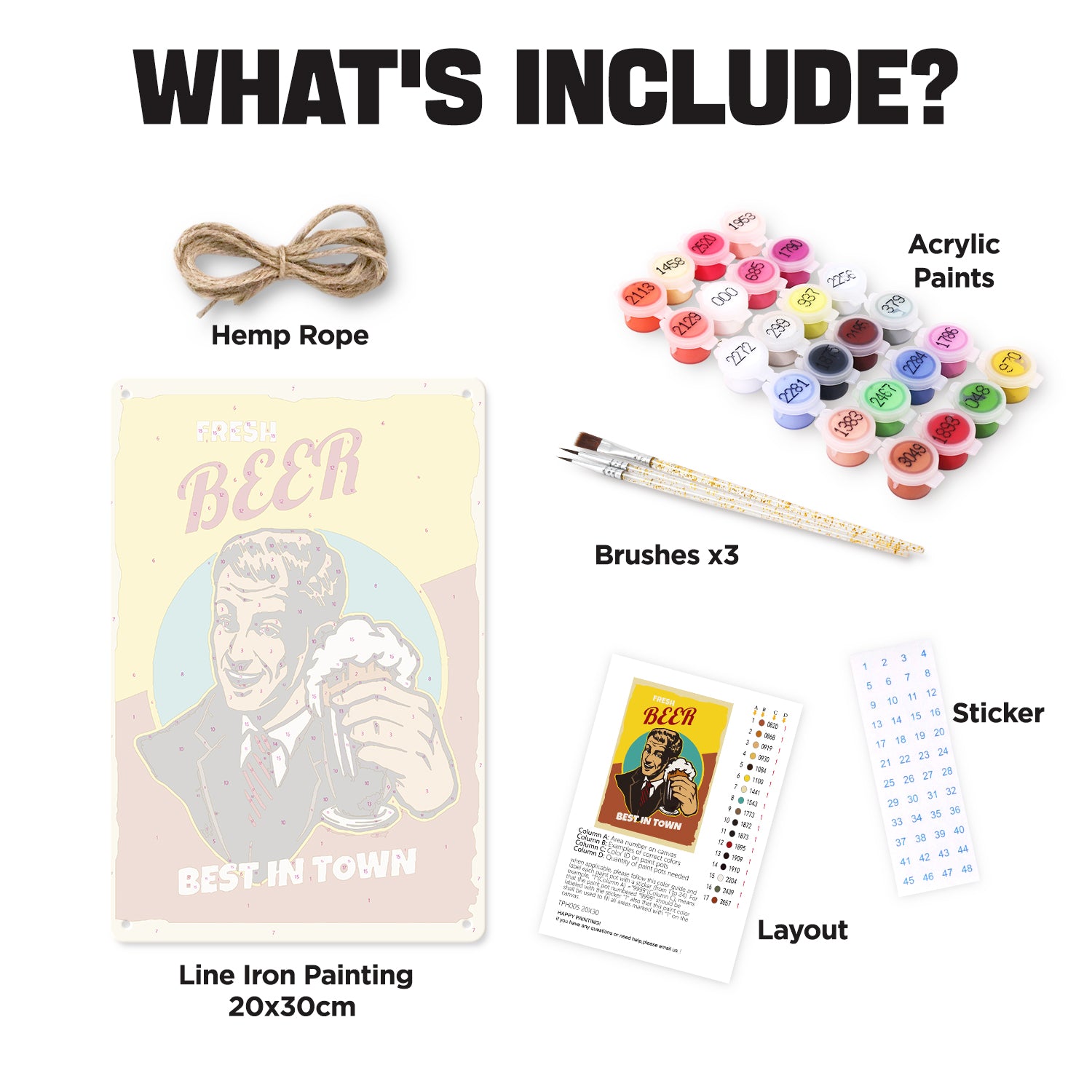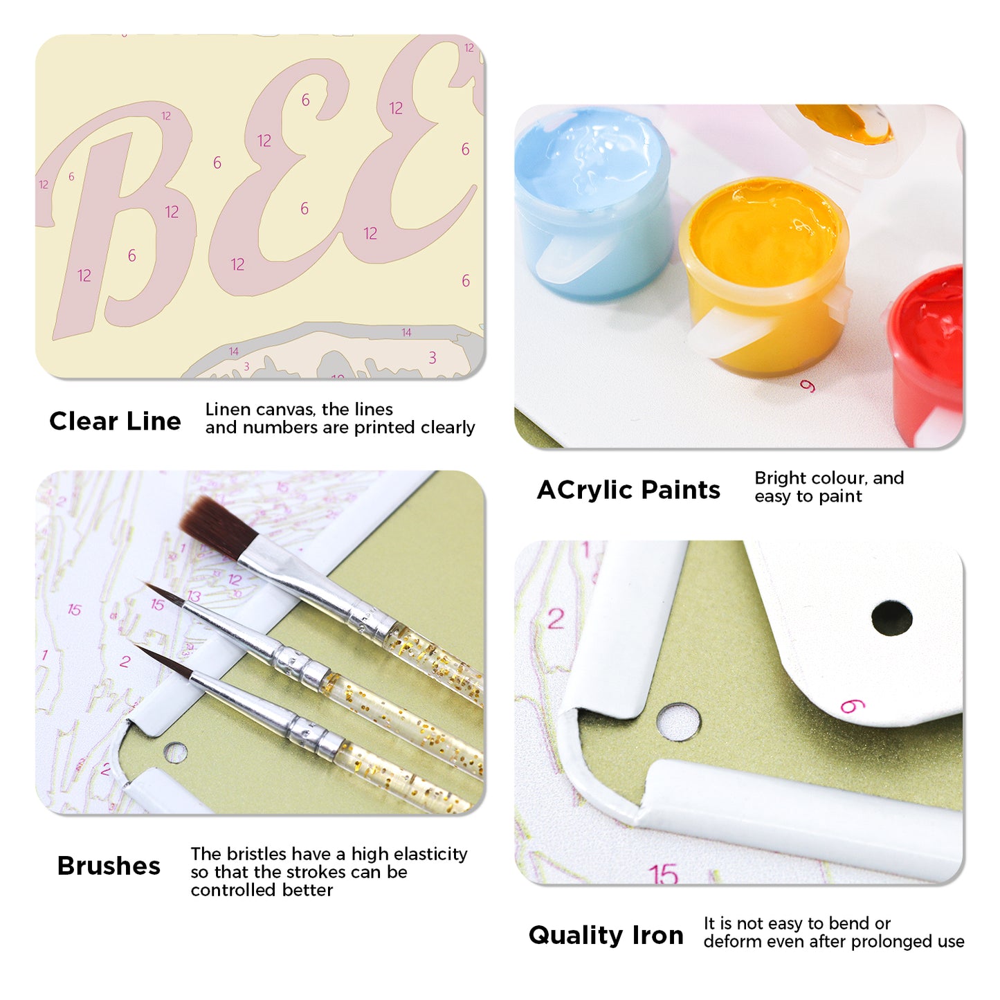 1.Numbered Paint Pots 2.Full Set of Brushes 3.Color Guide
