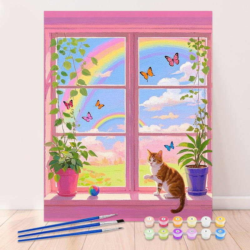 Kitten Catching the Rainbow - Paint by Numbers Kit